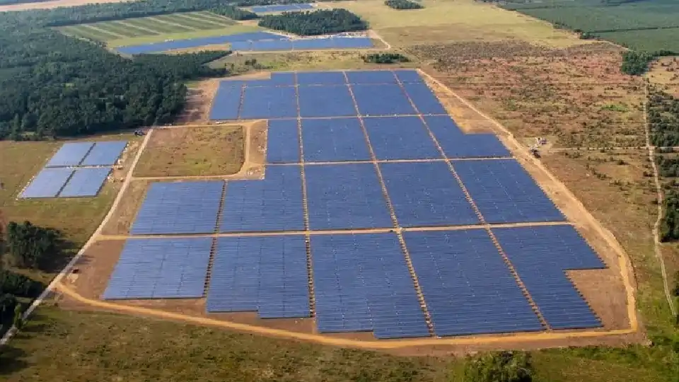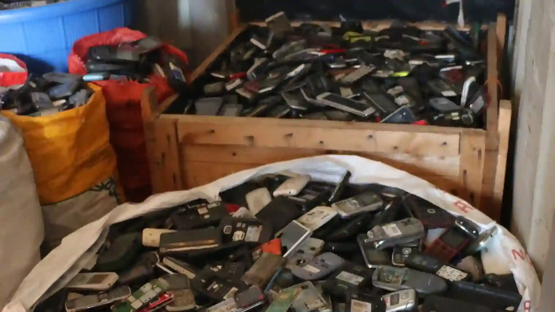 In the background, you can see images of a mine, a data center, a waste disposal site full of phones, and a field covered with solar panels.